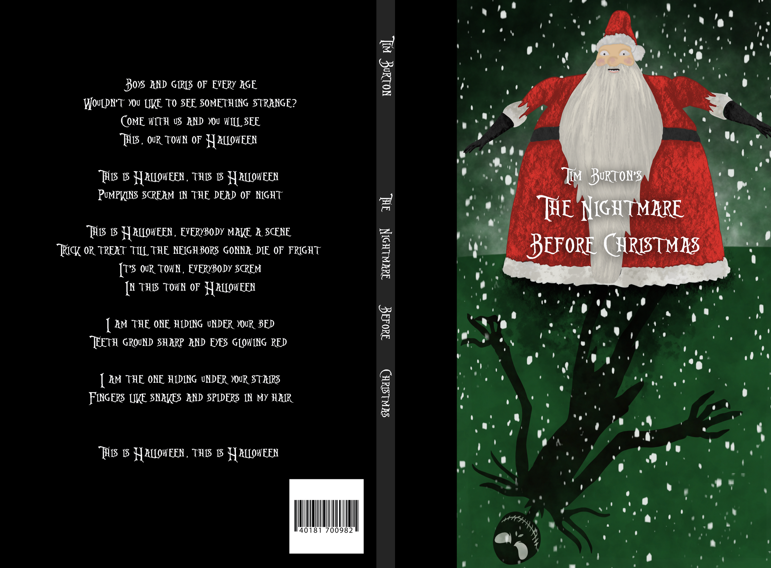 I love movies, especially ones from my childhood. As it happens, there are books available for most movies and so I thought it would be a neat idea to design some book covers for one of my favorite movies, The Nightmare Before Christmas by Tim Burton. I chose to do three different designs, each showcasing my ability to use different elements and principles of design.