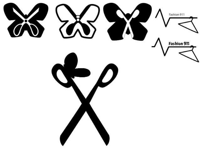 Ultimately, the symbol concept that stuck out the most to me was the scissors and butterfly combination. I took to Adobe Illustrator and drew versions of both and then worked to combine them in a way that unified the two constructs but also afforded balance and strong contrast.