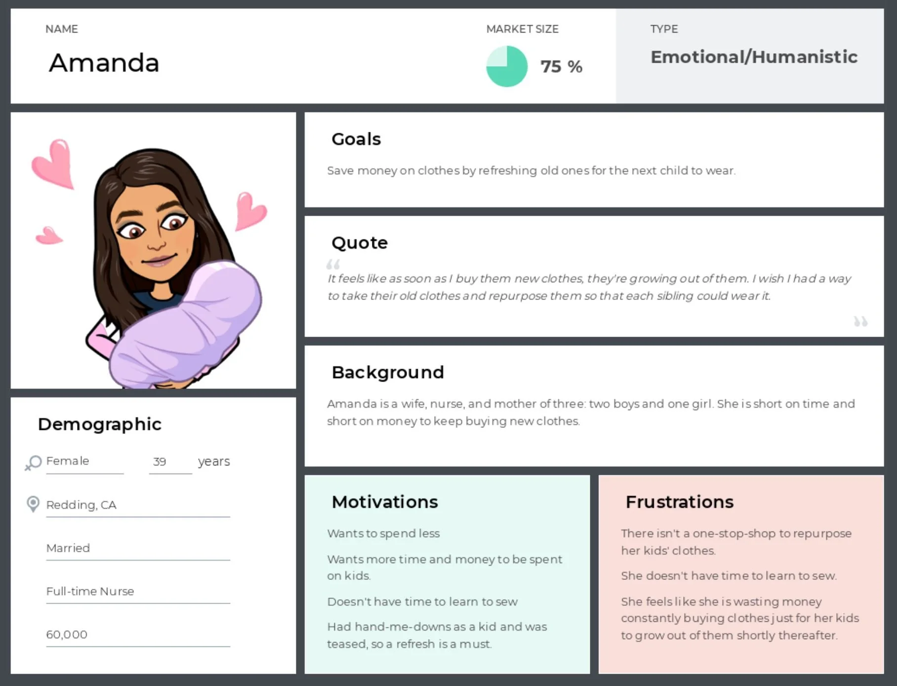 Also, while designing my site layout I needed to consider who my users would be. That is why I created a user persona and focused on what would motivate them to use the services we offer as well as some information on her background and current frustrations. This allowed me to take on another perspective when it came time for user testing.