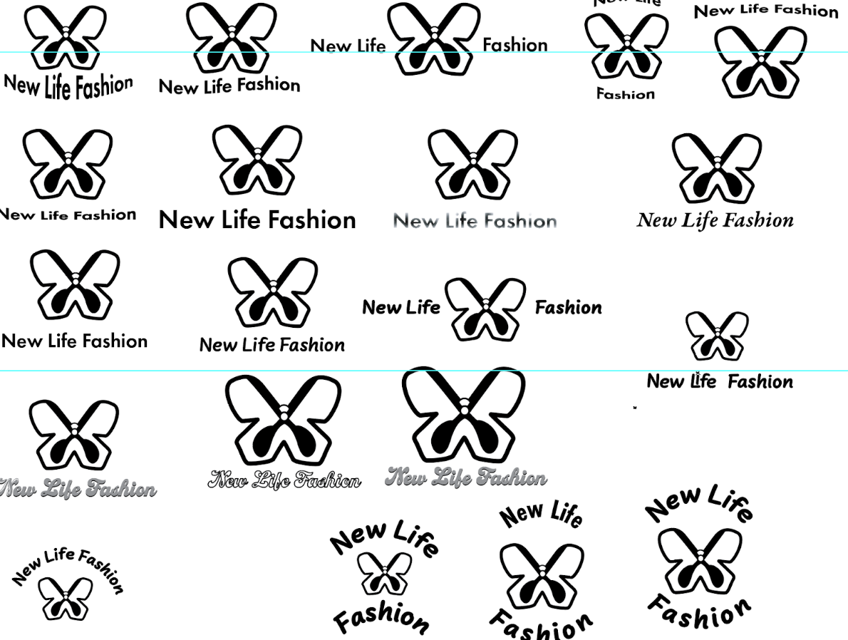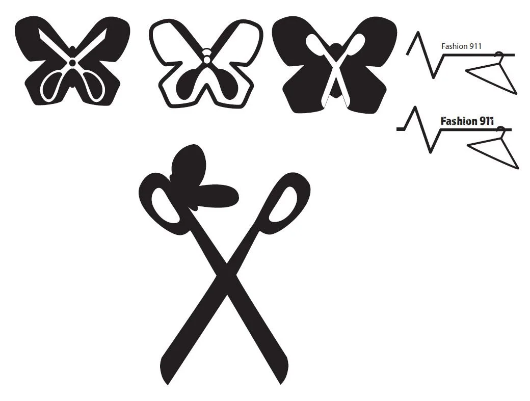 From my symbol sketches, I chose a couple of ideas for further logo development; butterflies and scissors as well as a clothing hanger with a heartbeat. The scissors in the butterfly design came as a natural thought when I noticed the shape of the wings looked similar to the shape of open scissors. To me, it combined the idea of transformation with clothing and so that was the symbol design I chose to focus on. It was important to me that I could see both the scissors and the butterfly and that the logo remained simple and clean.